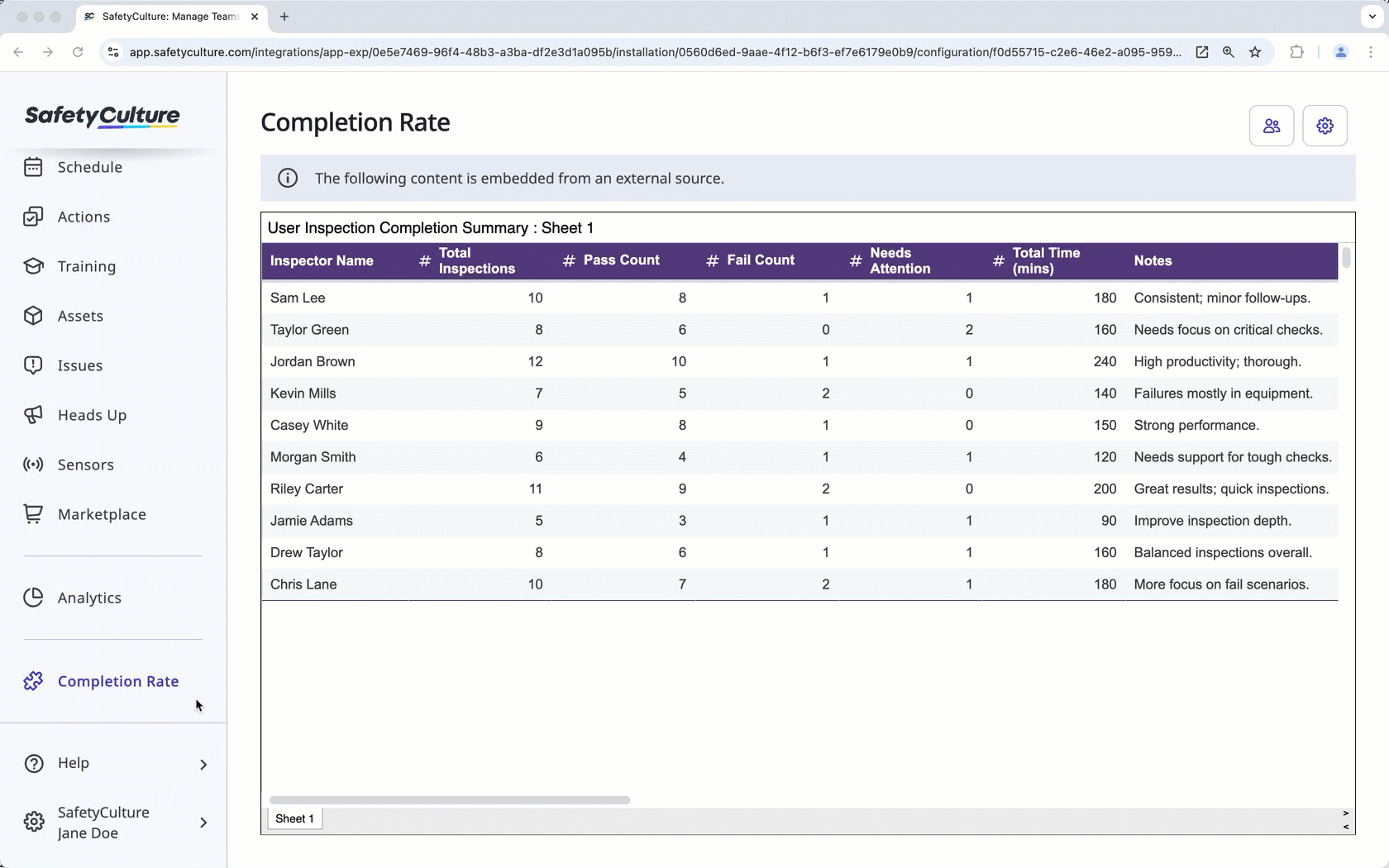 Yes, you can! By default, embedded Google Sheets are accessible to all users in your SafetyCulture organization. To restrict access to specific users, click the people icon on the upper-right of the page, then choose the users you want to grant access to. Please note that depending on the embed link you have added, users may still need to log in to Google Sheets to view a spreadsheet.