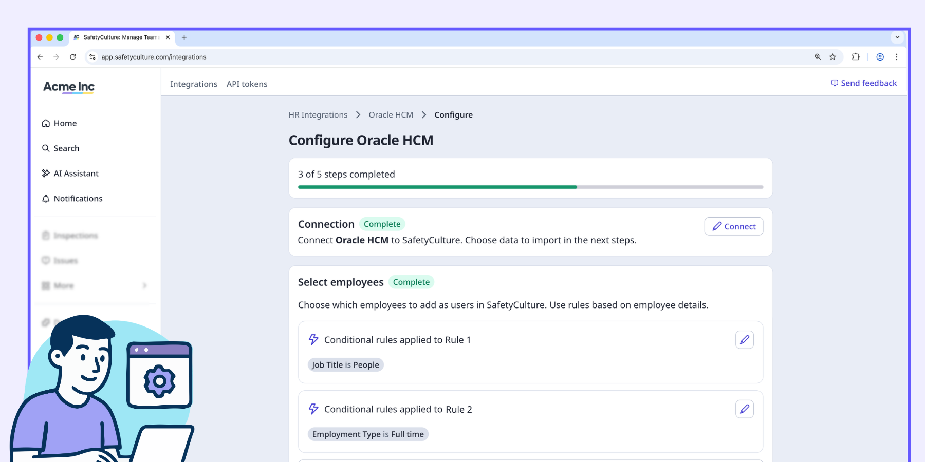 Keep your SafetyCulture user list in sync with Oracle HCM. This integration automatically imports employee data based on the rules you set, so you spend less time managing users manually and more time on the work that matters.
