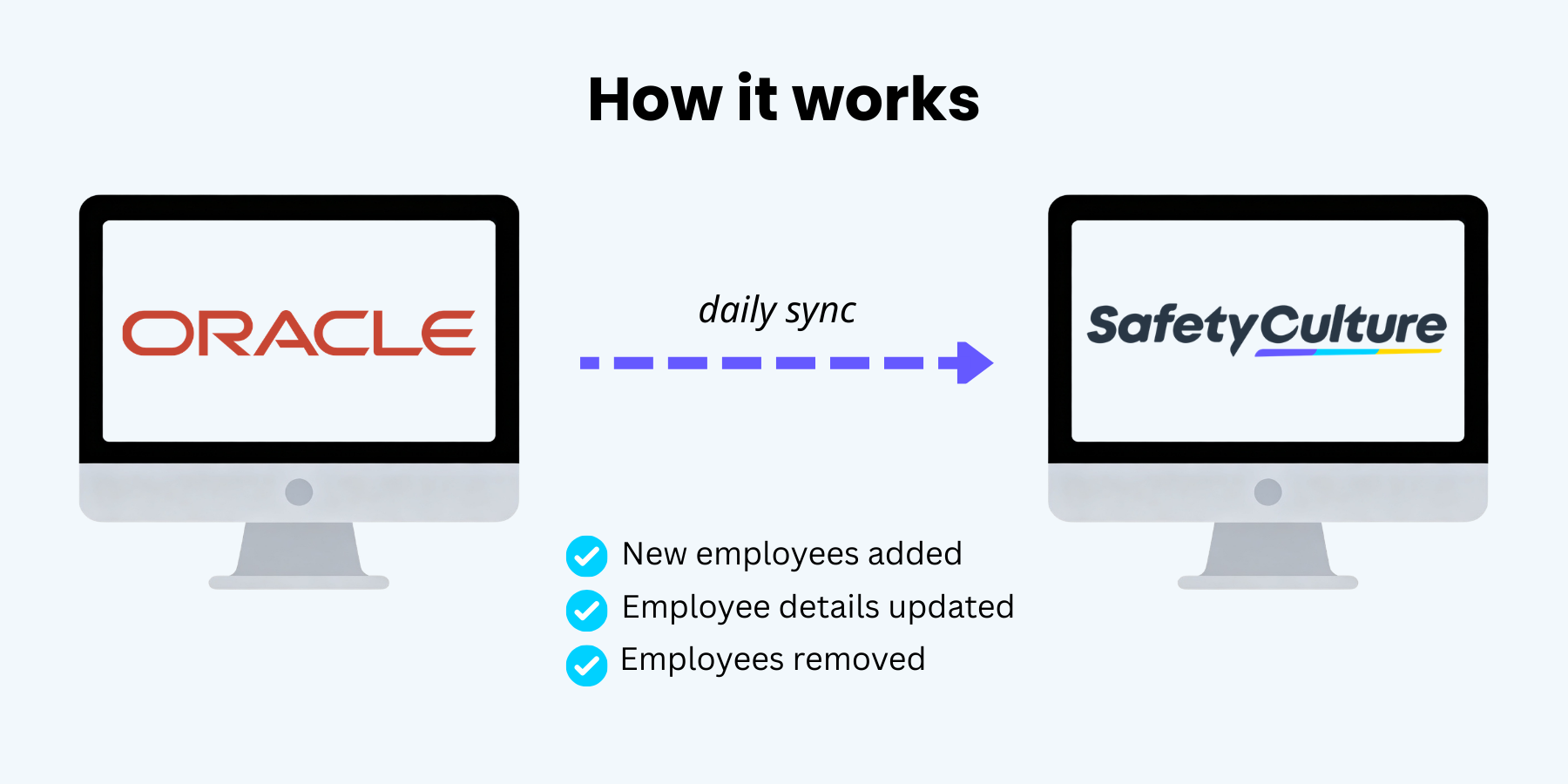 Oracle HCM is your source of truth. When you update employee information there, SafetyCulture reflects the change on the next sync.