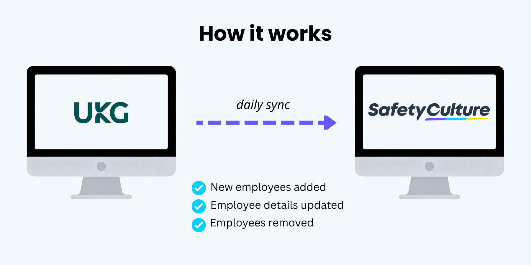 Connect UKG Ready to SafetyCulture to easily import and manage users. When employees join or leave UKG Ready, SafetyCulture updates automatically.
