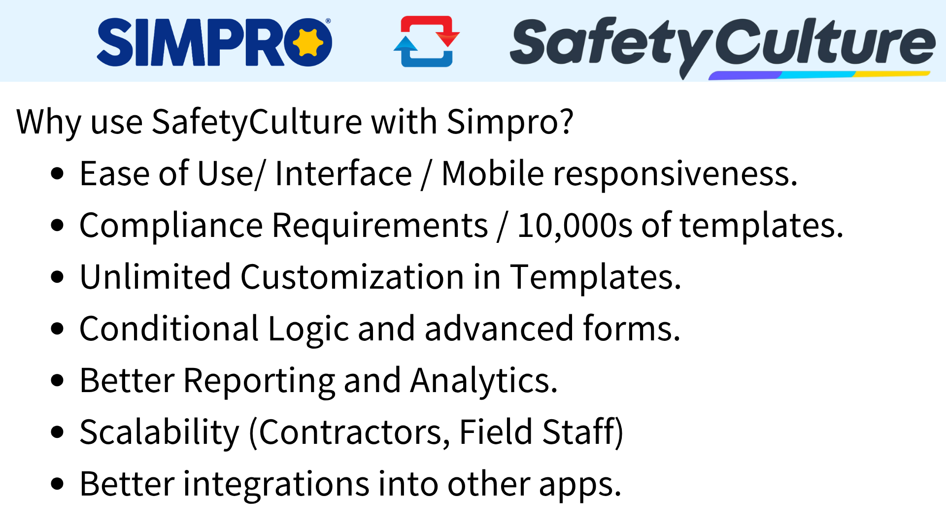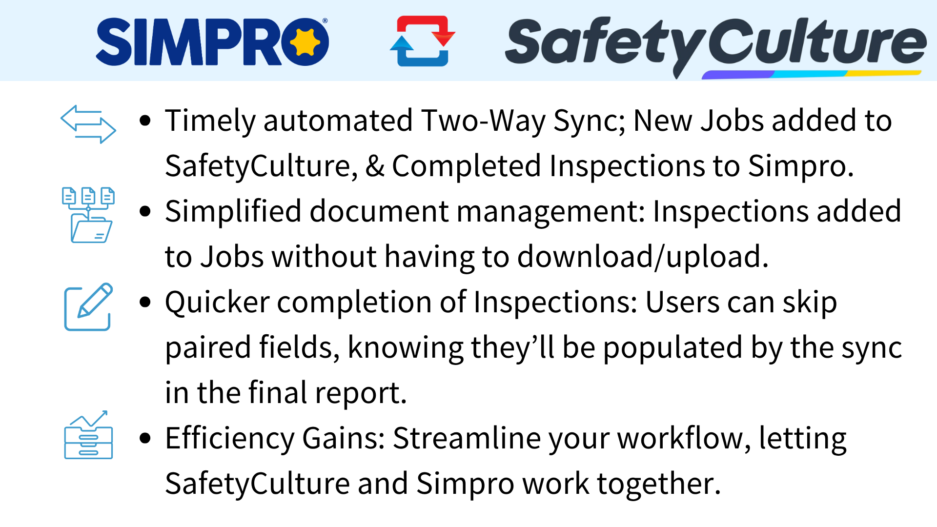 One-way sync (SafetyCulture to Simpro):